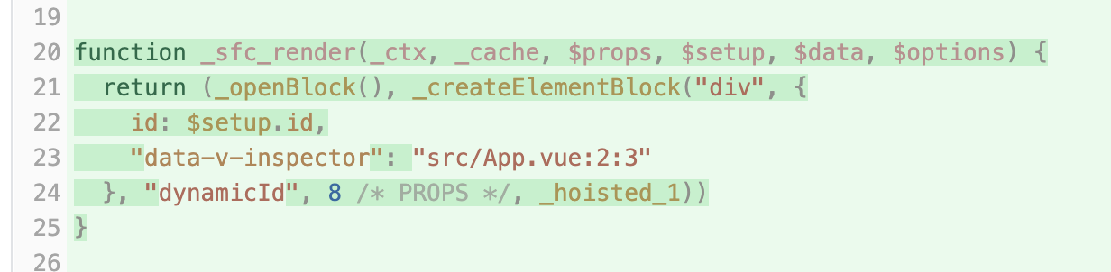 $setup.id的值作为div的id属性值,读取行为触发“读取拦截”,与渲染函数建立依赖。 $setup.id改变时渲染函数重新执行,对应的属性随之更新。