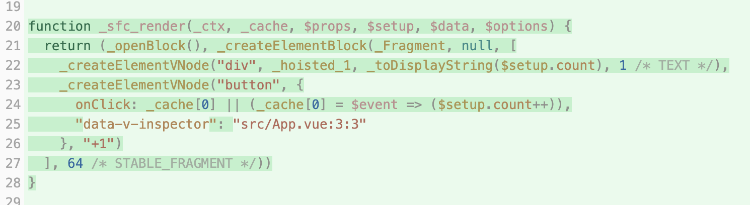 ($event) => $setup.count++;- 事件回调中对响应式数据的写入会触发变更与重新渲染调度。