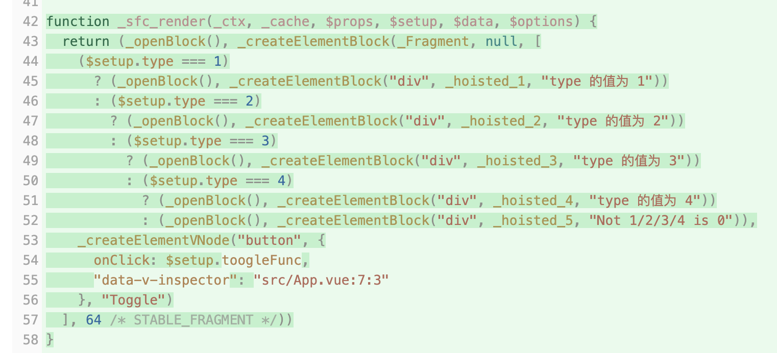 $setup.type值变化,渲染函数重新执行,命中不同分支以生成不同的虚拟 DOM。