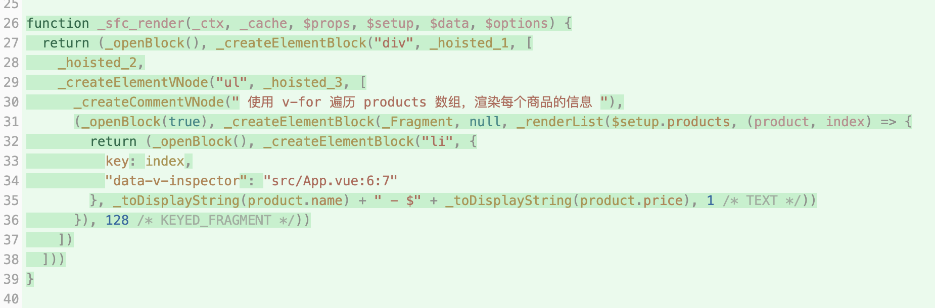 - 编译出来的渲染函数本身“没有指令”,不同指令被编译为不同的普通 JS 处理逻辑。