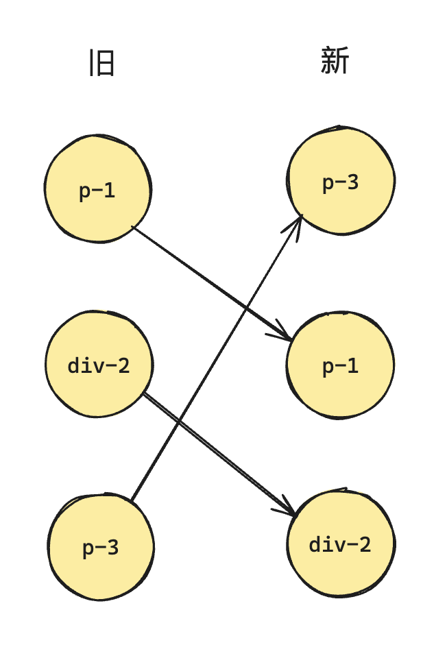 但是我们稍作观察,会发现上面的例子中仅仅是元素标签移动了位置,因此最理想的情况是移动 DOM 即可,这样也能达到对 DOM 节点的复用。