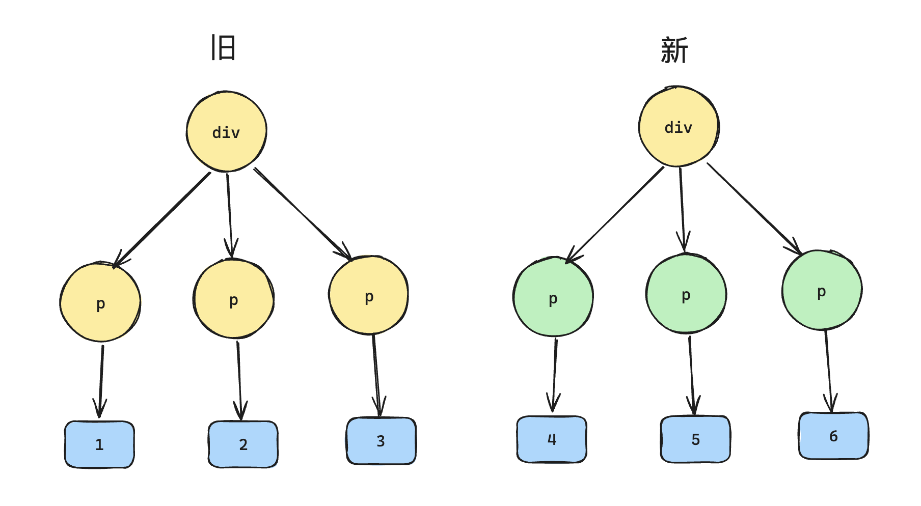 };如果完全不采用复用策略,那么当更新子节点的时候,需要执行 6 次 DOM 操作。