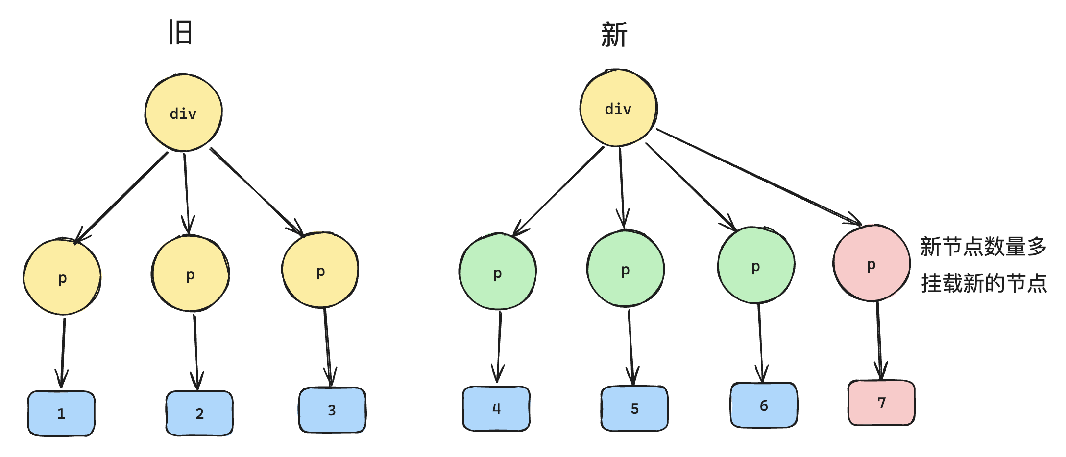 - 挂载所有新的子节点,需要 3 次 DOM 的添加操作